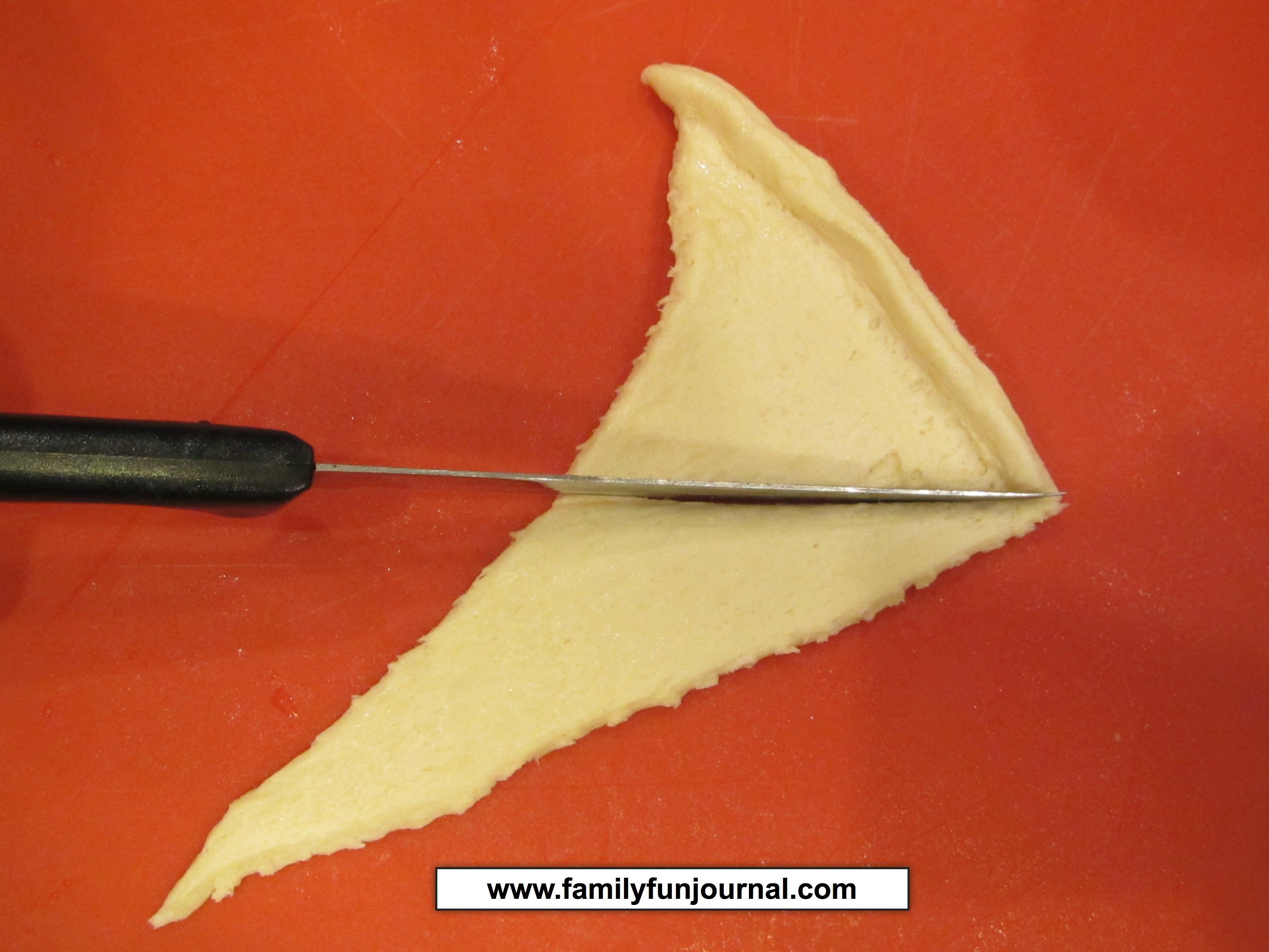 - Cut each crescent roll in half.